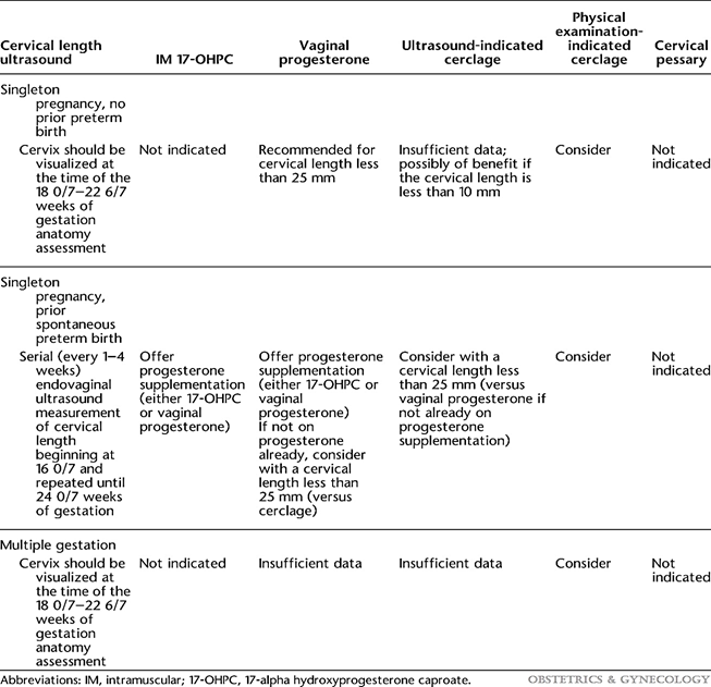 2021년 ACOG 가이드라인에서 조산 예측과 예방에 대한 내용이 업데이트 되었다. 2012년 number 130에서 10년만에 number 234로 개정된 만큼 그 사이 많은 연구가 소개되었다. 조산의 위험인자는 약 10여가지가 소개가 되고 있는데 이중에서 조산기왕력, 다태아임신 그리고 짧은 자궁경부길이(임신 16-24주 측정, <25mm 미만)가 가장 중요한 위험인자로 소개되었고 이 3가지 위험인자를 중심으로 다음과 같은 시나리오에 Intramuscular 17-alpha hydroxyprogesterone caproate (이하 IM 17-OHPC), vaginal progesterone(이하 vaginal PG), cervical cercleage의 적응증을 제시하였다. (그림 1) 가이드라인에 권고된 내용(Level A, Level B, Level C)을 중심으로 소개하고자 한다.